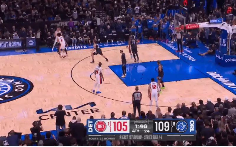 虎扑04月27日讯 今日,NBA官方公布魔术与活塞常规时间最后2分钟的裁判报告。比赛中总共出现1次漏判。