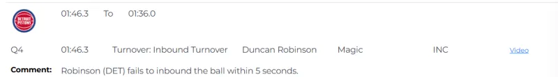 在常规时间还剩1分46秒时,邓肯-罗宾逊发球5秒违例,裁判并没有吹罚。